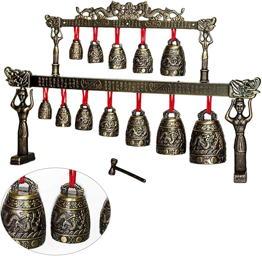 Elevate your meditation practice, musical exploration, or sacred space with this exquisite Bianzhong Bell Set — a traditional Chinese bronze chime instrument rich in history, symbolism, and sonic beauty. Measuring 15 inches wide and 9.25 inches tall, this ornate set features 12 hanging bells, each crafted to produce a unique tone, pitch, and resonance.