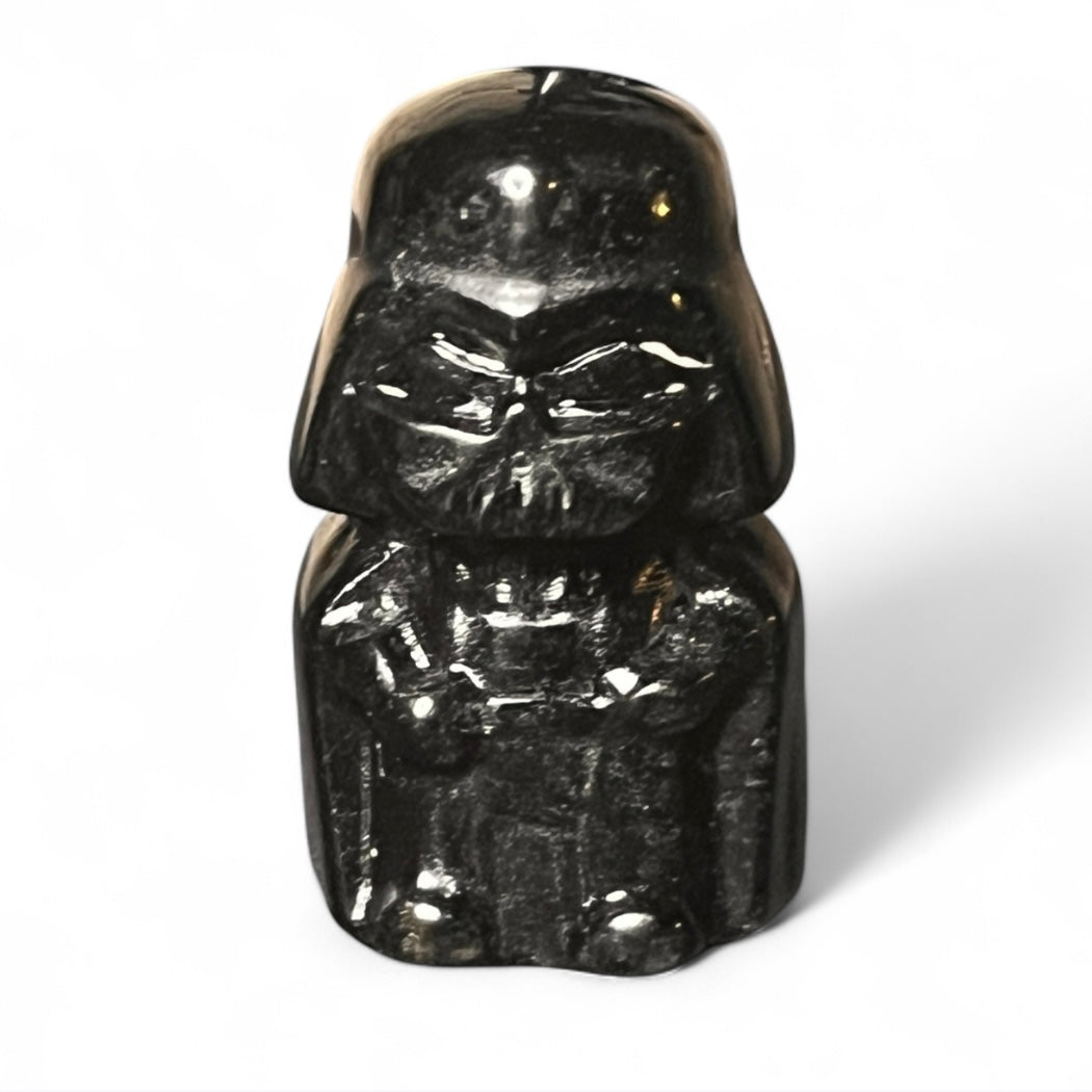 This miniature collectible captures the dark, commanding presence of Darth Vader while showcasing the deep luster and reflective sheen of natural volcanic glass. A striking gift for Star Wars fans, crystal collectors, or anyone drawn to the mysterious power of both myth and stone.
