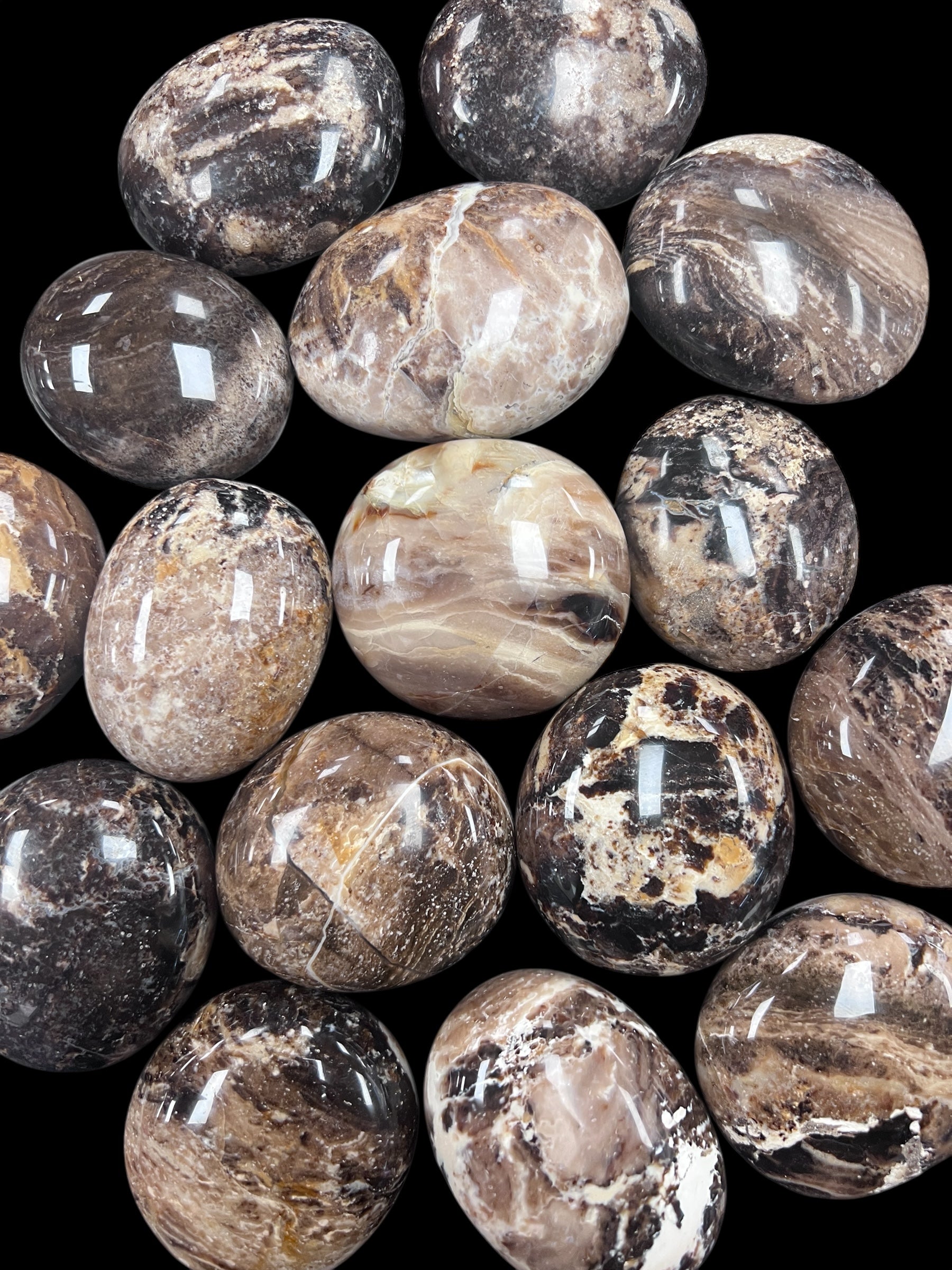 Embrace the calming and stabilizing power of Common Black Opal with these beautifully polished palm stones. Each piece showcases a natural palette of earthy browns, warm beige, and soft cream tones, reflecting the grounding energy of the earth itself. Weighing approximately 117 grams and measuring 2.5 x 2 – 2.5 inches, these palm stones fit comfortably in your hand—perfect for meditation, energy work, or everyday carry.