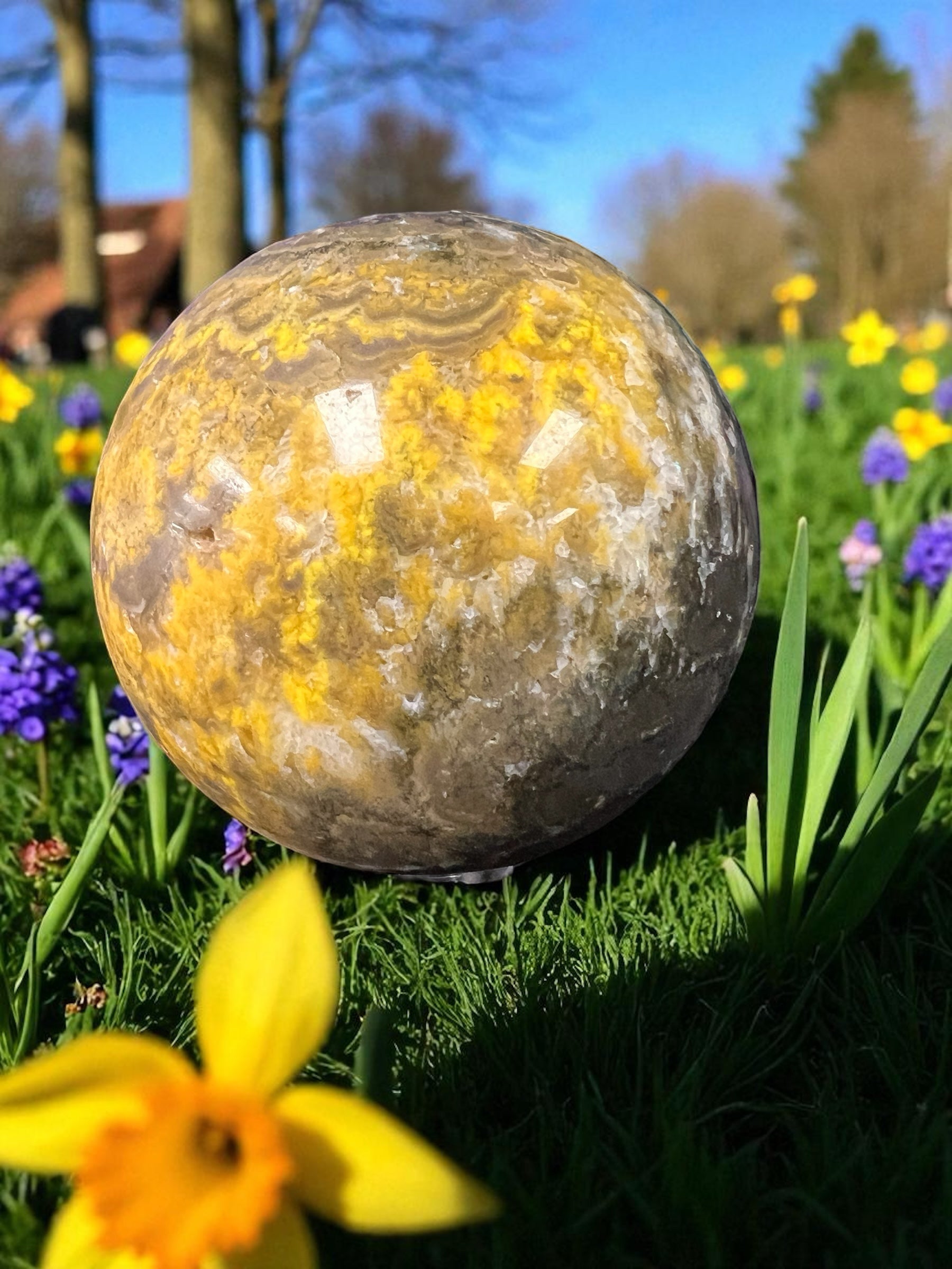 Crystal spheres radiate energy evenly in all directions, making them perfect for meditation, energy work, or altar displays. This Bumblebee Jasper sphere creates a balanced flow of vitality in your space.