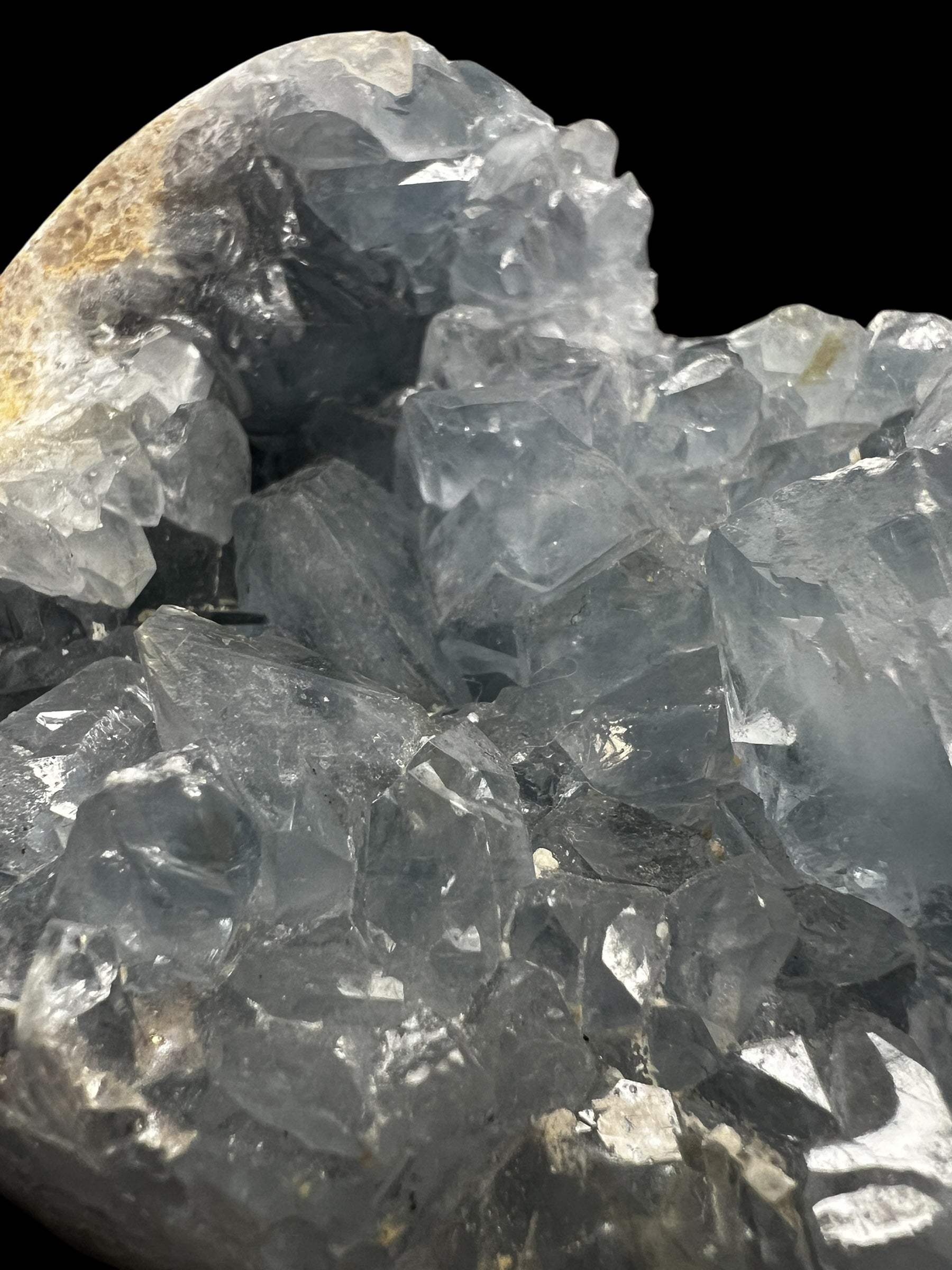 This Celestite geode is ideal for placing on your altar, nightstand, or meditation space. It's energetically aligned with the Throat and Crown Chakras, making it especially beneficial for clear communication, spiritual insight, and mental clarity.