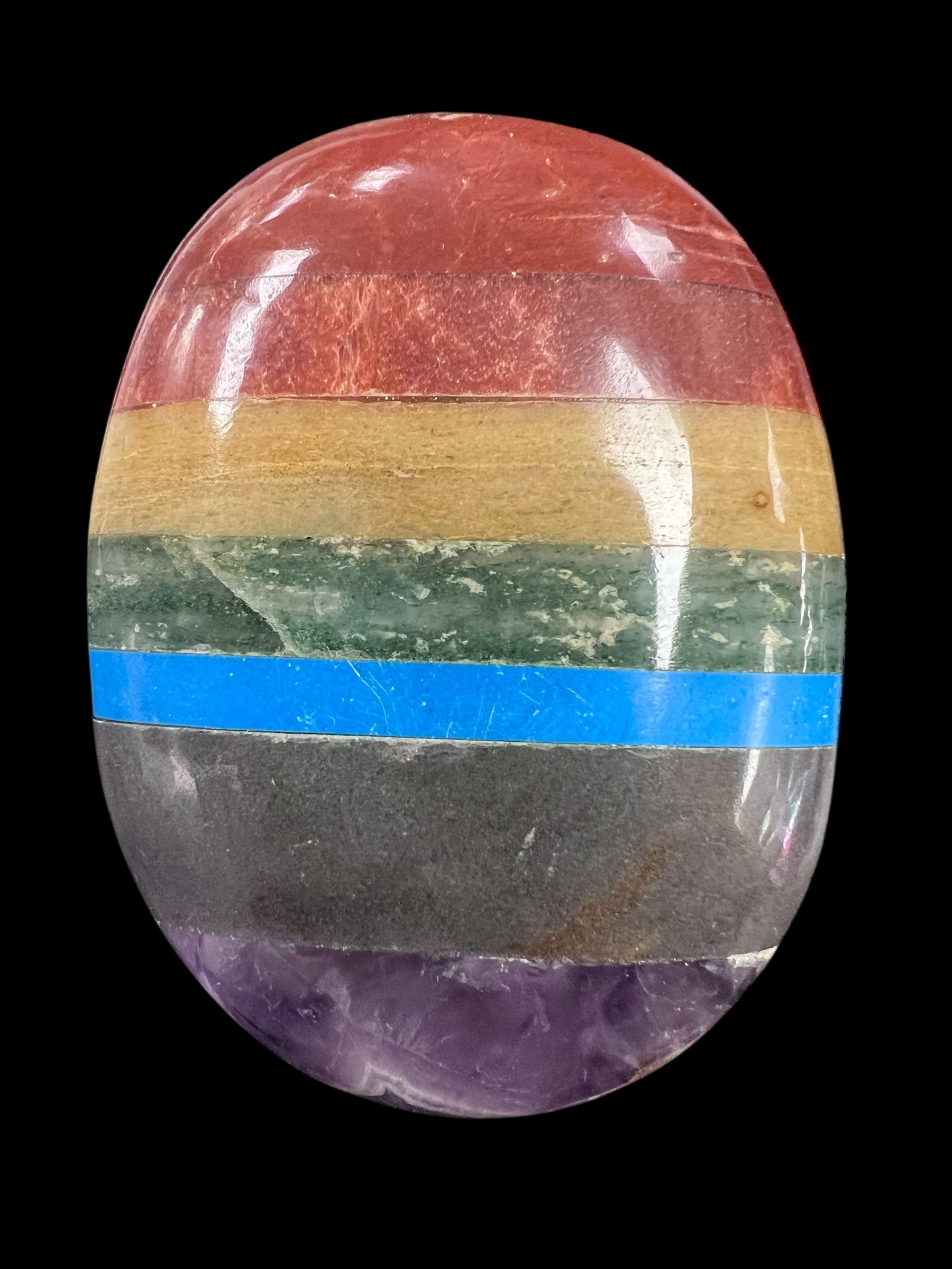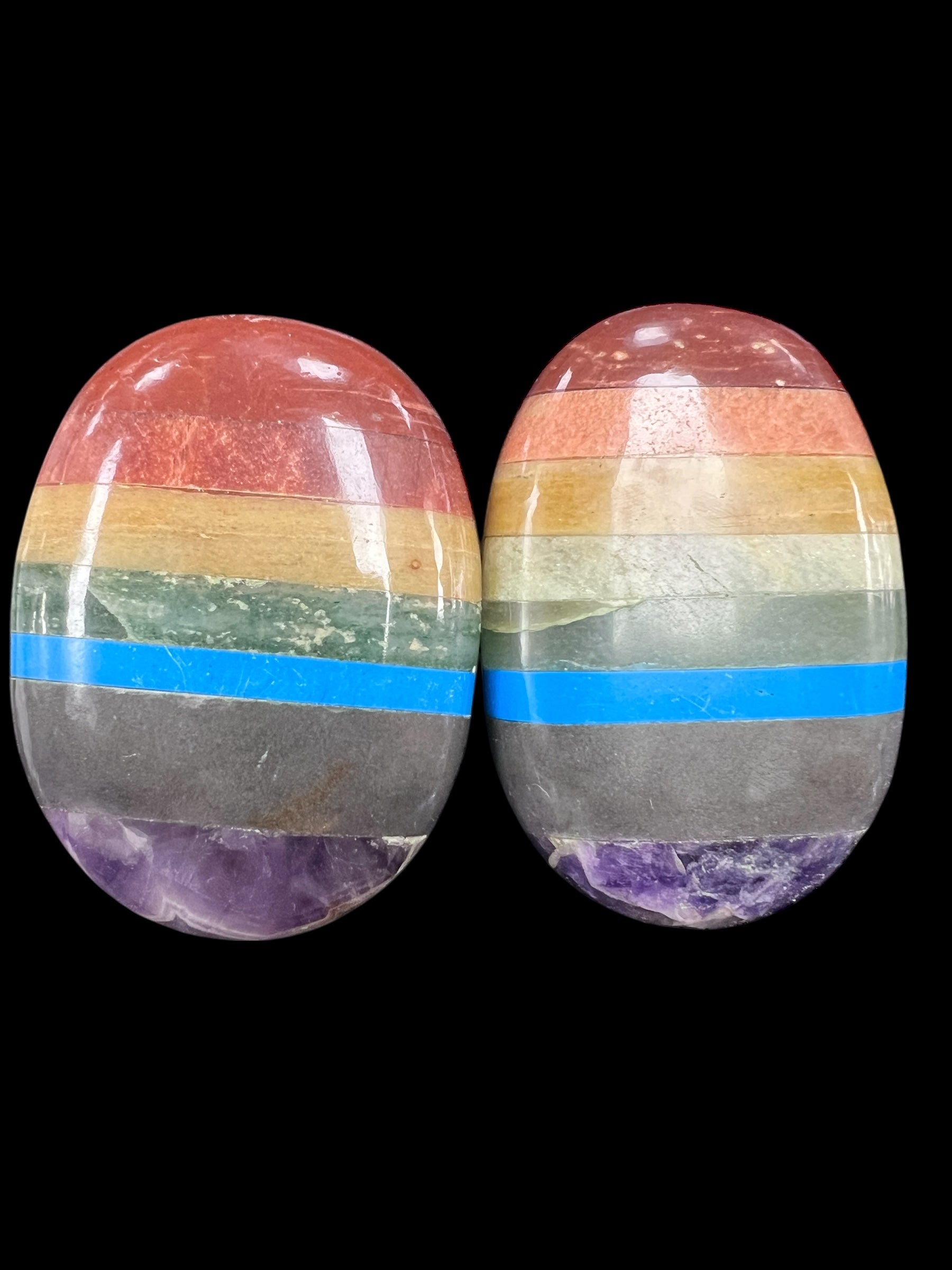 Bring balance, harmony, and vibrant energy into your spiritual practice with our Rainbow Chakra Palm Stones — a beautiful, powerful set of polished stones designed to align and activate your body’s seven primary energy centers. Measuring approximately 2.5–3 inches by 2–2.5 inches and weighing about 135 grams, each palm stone fits comfortably in the hand, making them ideal for meditation, crystal healing, and daily energy work.