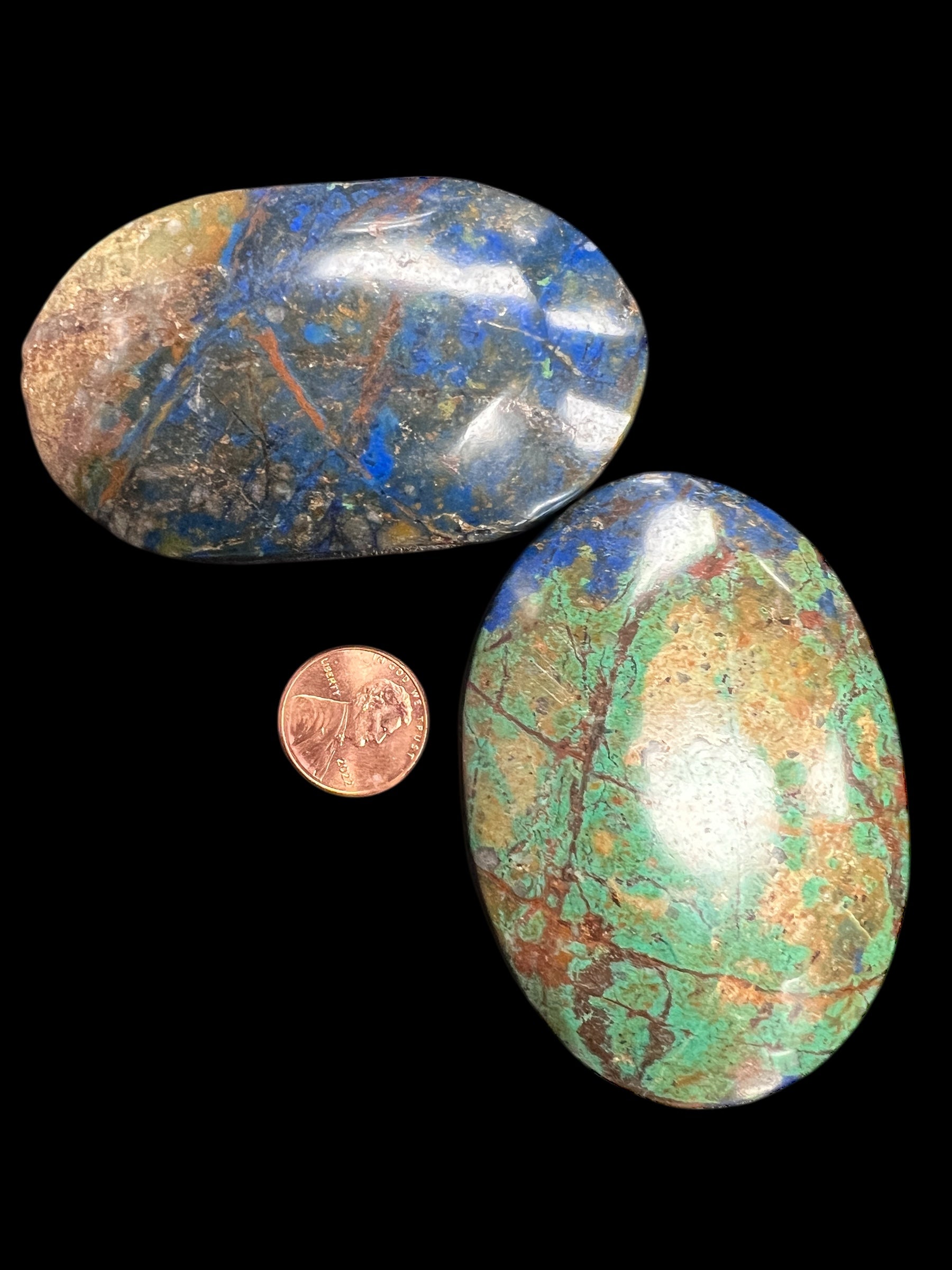 Discover the serene beauty of Chrysocolla Azurite, a rare fusion of calming blues and greens that embody emotional healing, communication, and tranquility. Each palm stone is polished to perfection, offering a smooth surface ideal for meditation, grounding, and crystal energy work.