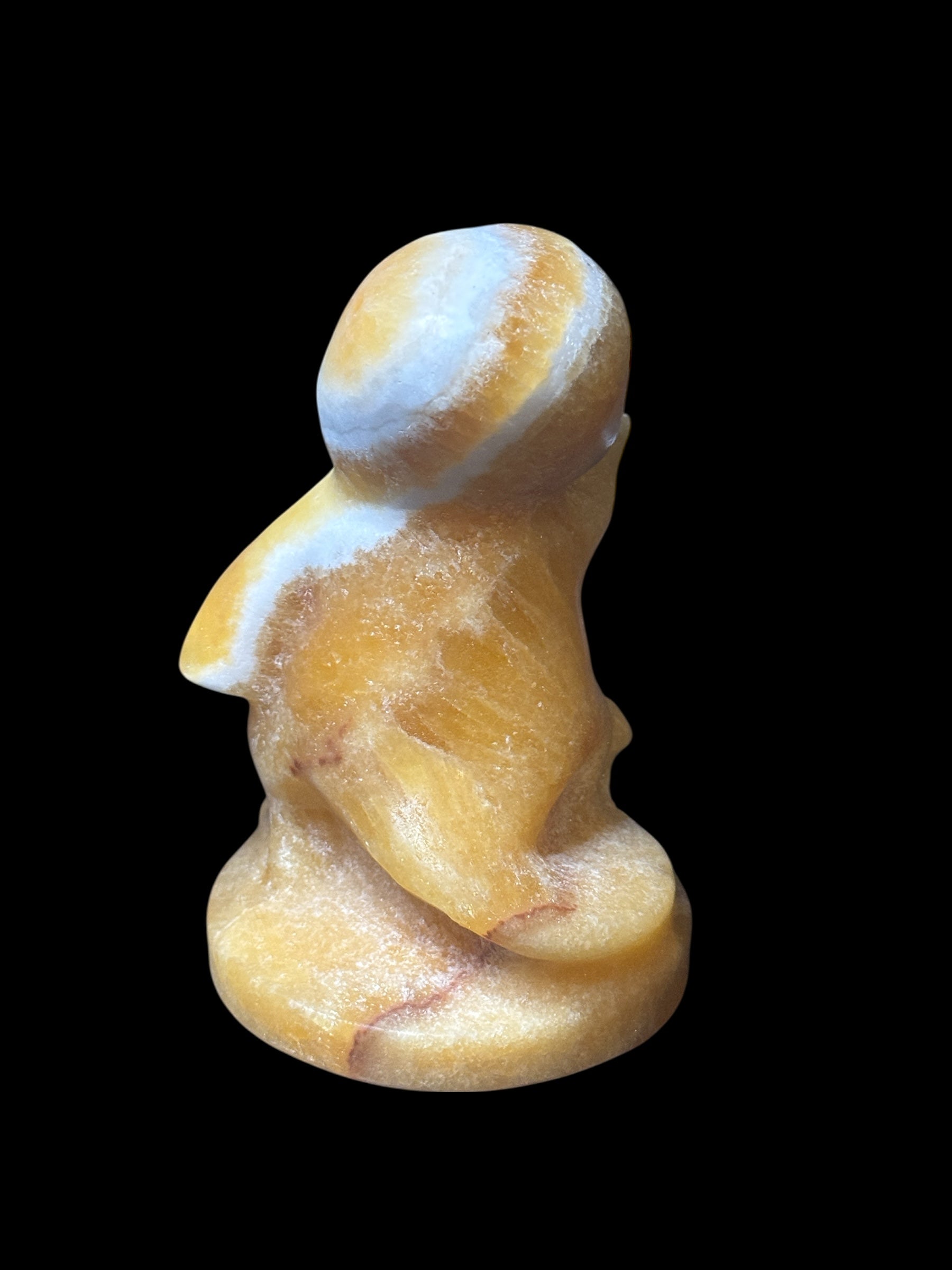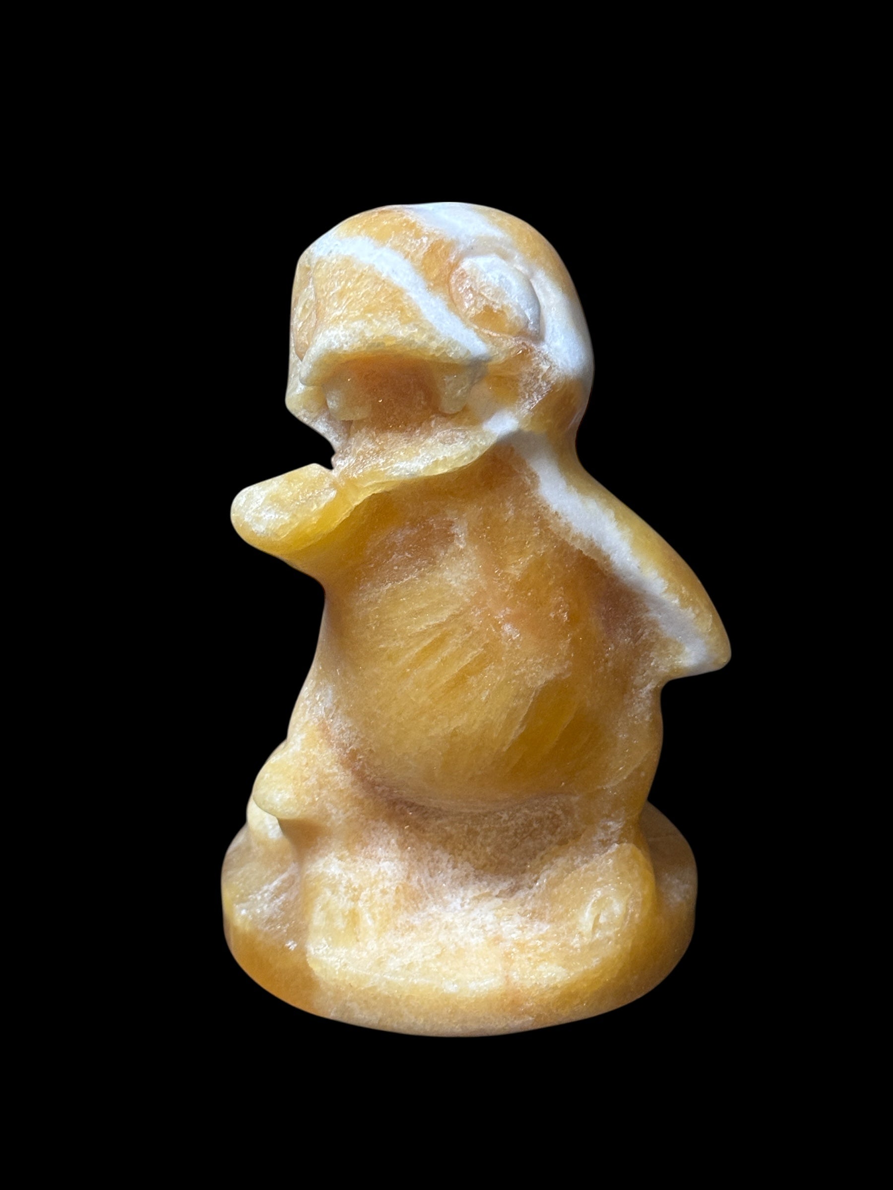 Each figurine is hand-carved from authentic Orange Stripe Calcite, known for its energetic frequency, creativity-boosting properties, and radiant beauty. The flowing orange and white banding enhances the flame-like essence of this character—making it a perfect companion for your spiritual altar, gaming setup, or crystal collection.