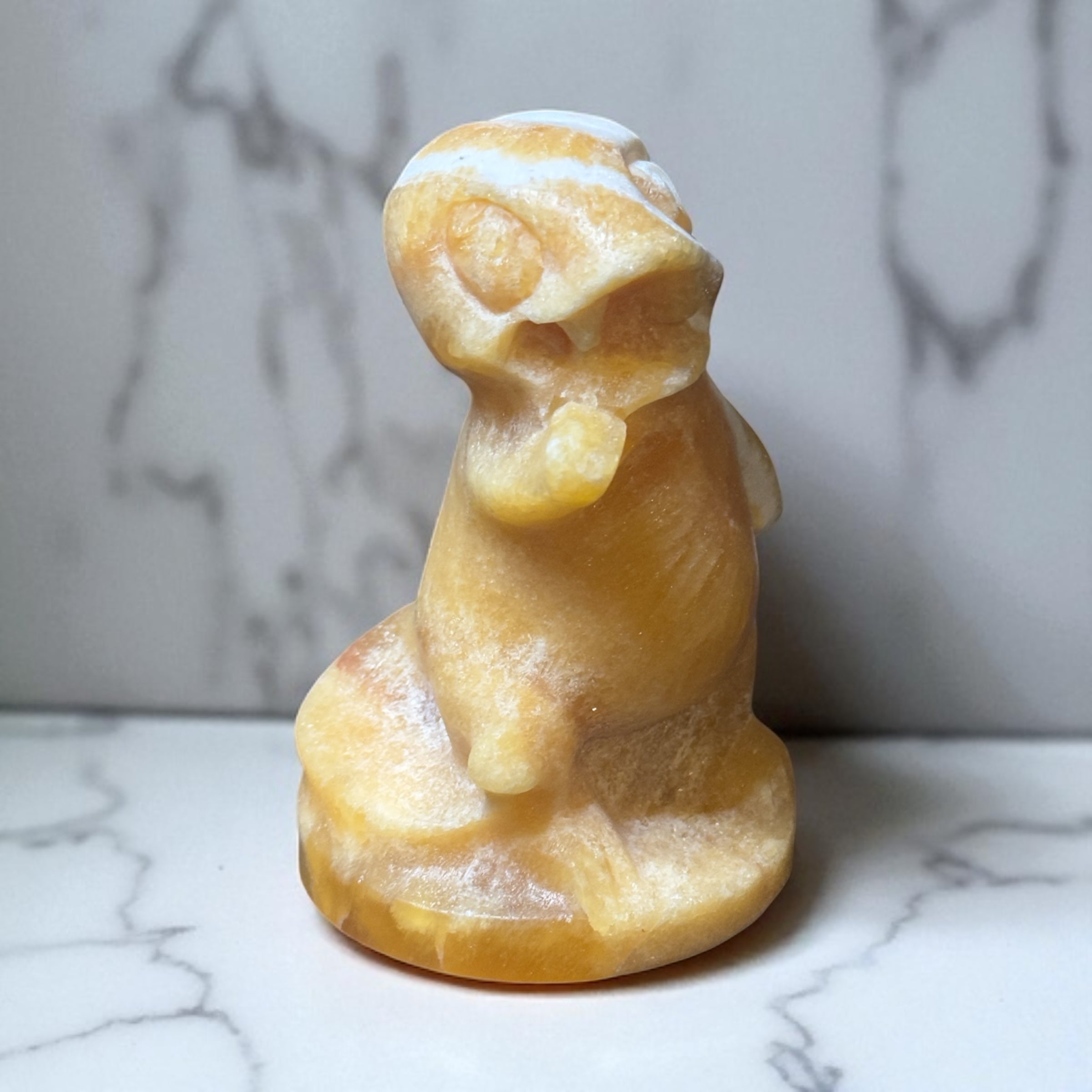 Step into a world where magic meets childhood wonder with this hand-carved Orange Stripe Calcite Charmander, standing a proud 5 inches tall. Inspired by the iconic fire-type Pokémon, this one-of-a-kind carving blends pop culture with the metaphysical brilliance of natural calcite.