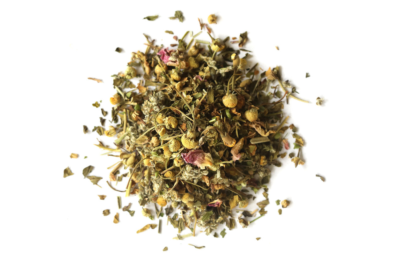 Crafted from a time-honored formula and sourced via Mountain Rose Herbs, this blend combines organic peppermint leaf, chamomile flowers, skullcap, mugwort, damiana leaf, rosemary, and rose petals to support lucid dreaming and dream recall.