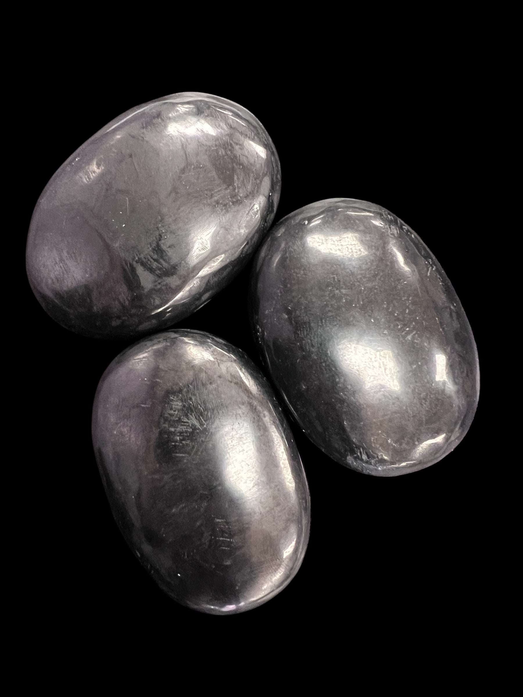 Our Shungite Palm Stones are polished, pocket-sized grounding crystals measuring approximately 1.5 x 2 inches and weighing about 49 grams. Smooth and comfortable to hold, these stones are perfect for meditation, daily protection, and energetic cleansing.