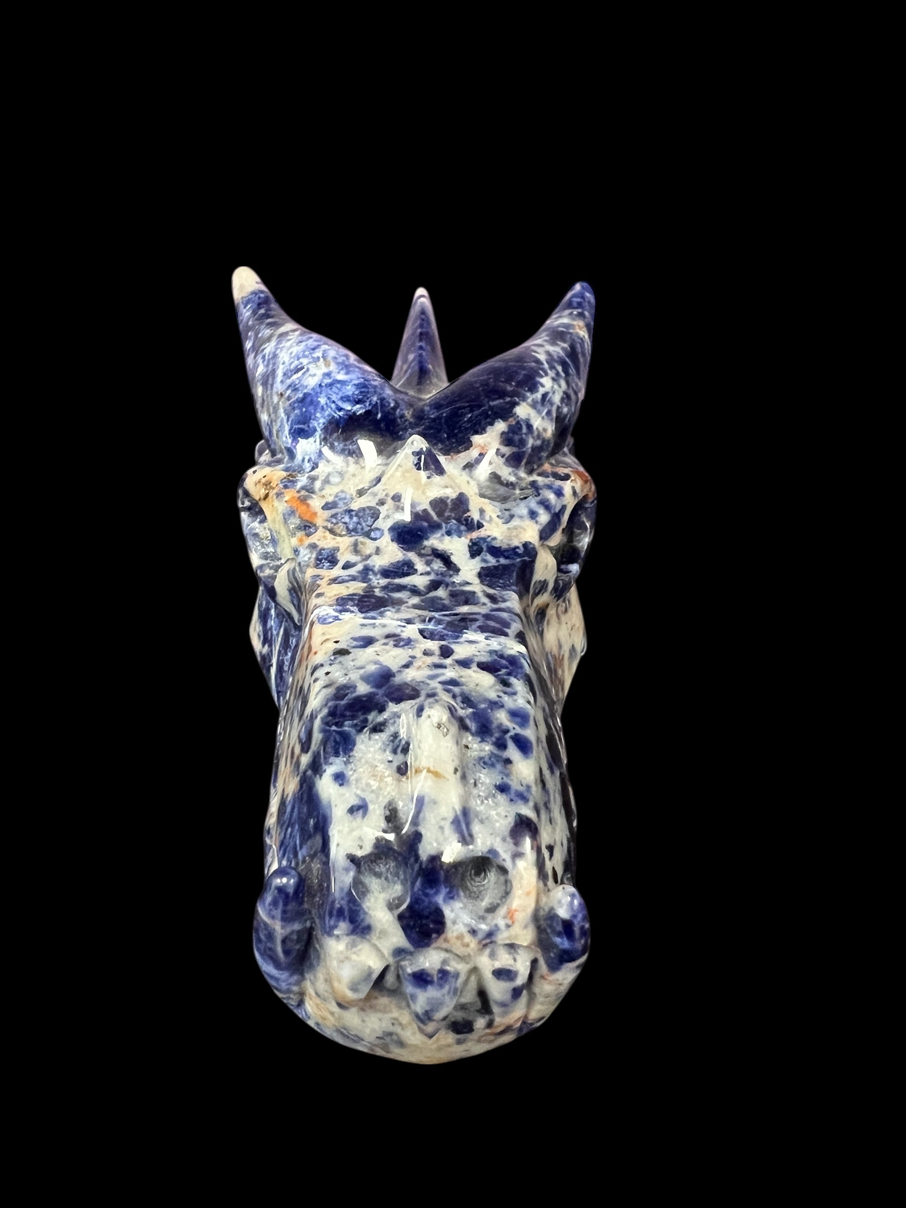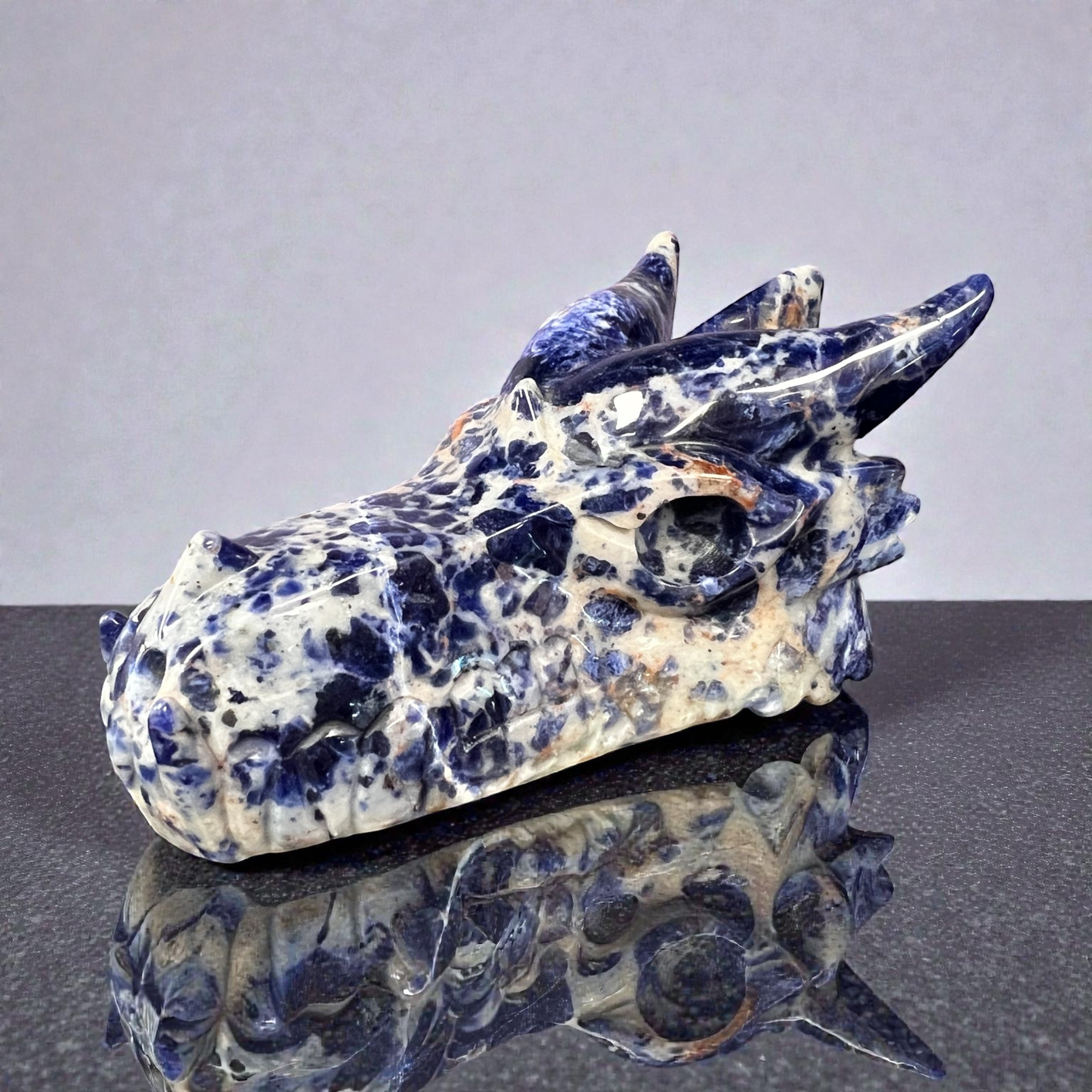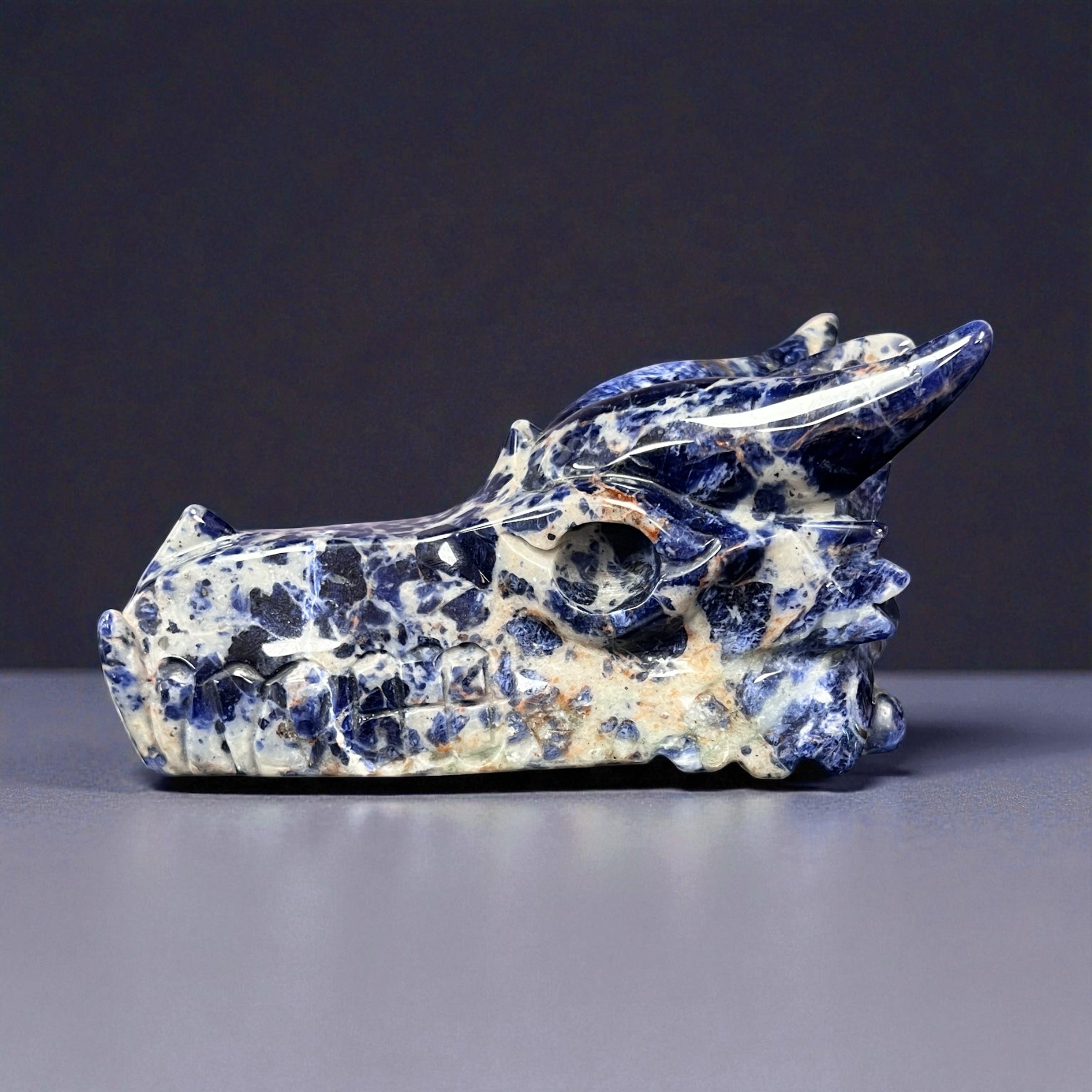 Dragons have existed in global mythologies for thousands of years—guardians of the unseen, protectors of treasure, holders of forbidden knowledge, and symbols of transformation. This carving captures that legendary essence, channeling the dragon’s commanding strength and pairing it with the tranquil clarity of Sodalite.
